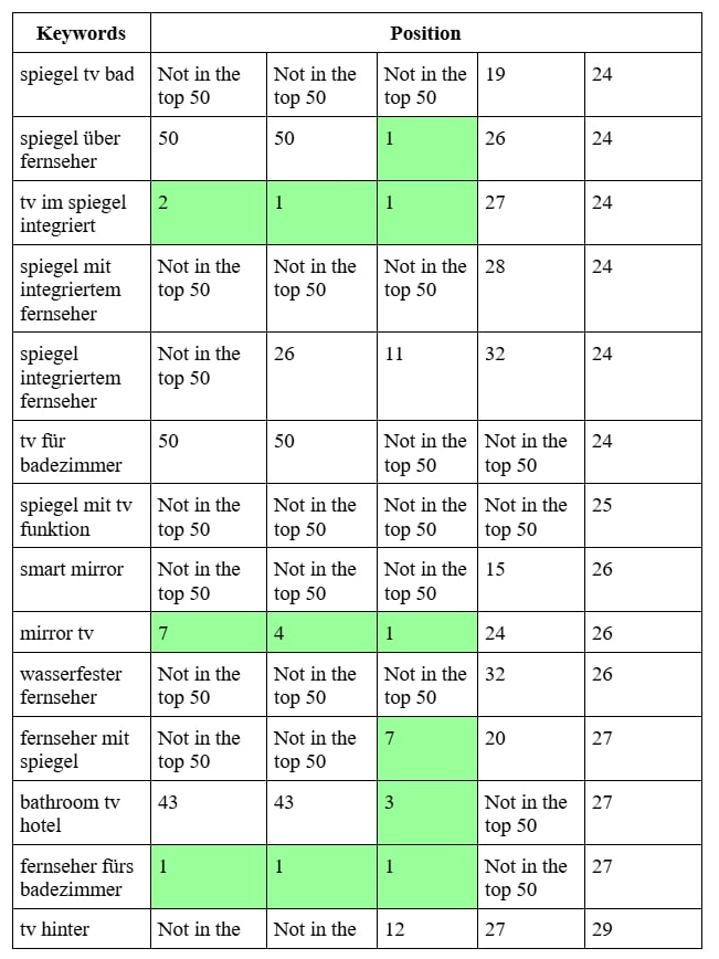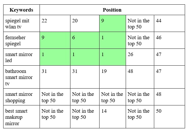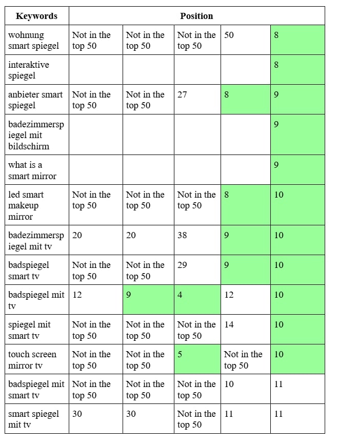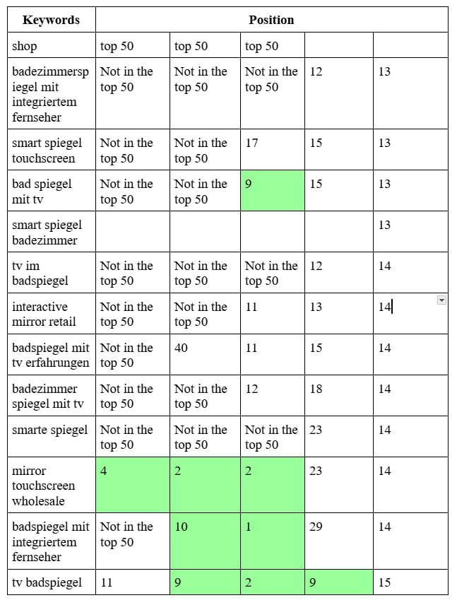 SEO продвижение сайта производителя умных зеркал в Германии