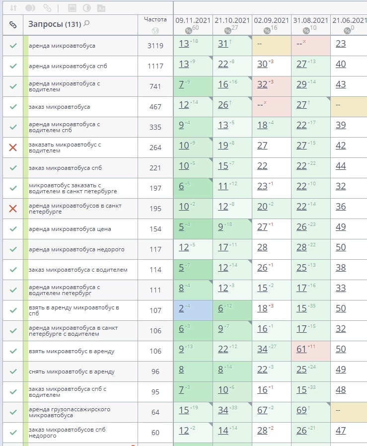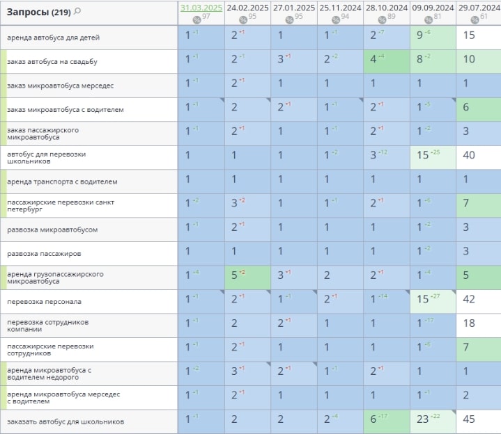 Сбор высокочастотных и среднечастотных запросов по теме аренды автобусов и микроавтобусов (аренда с водителем, на свадьбы, перевозка пассажиров, трансферы и т.д.), оптимизация страниц сайта под запросы для их выведения в ТОП-10 выдачи поисковых систем.