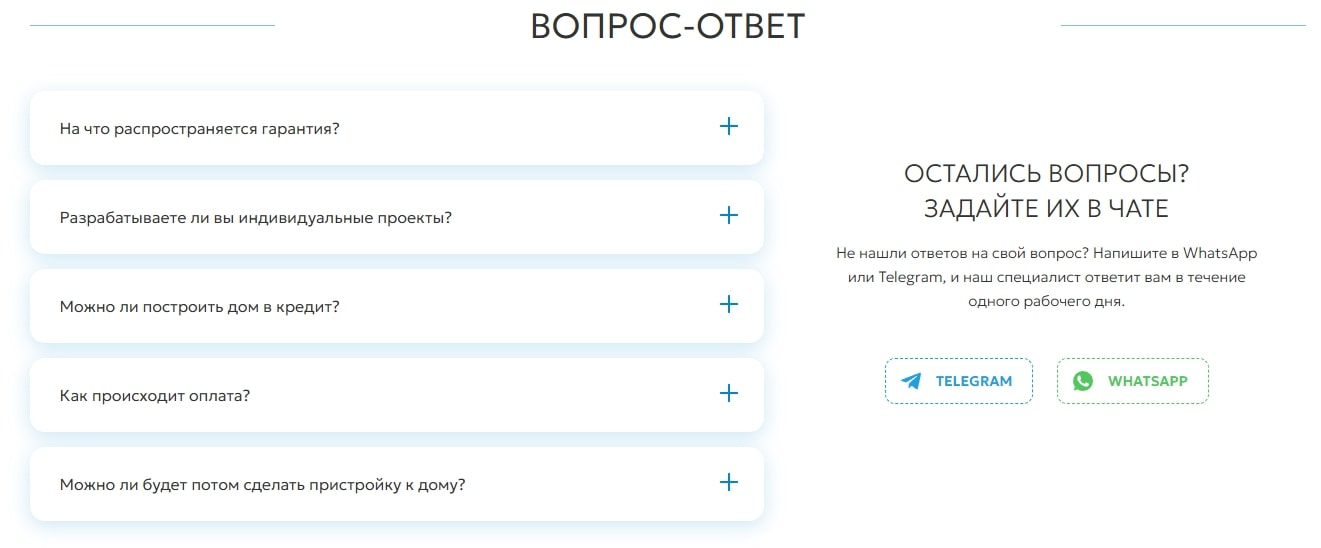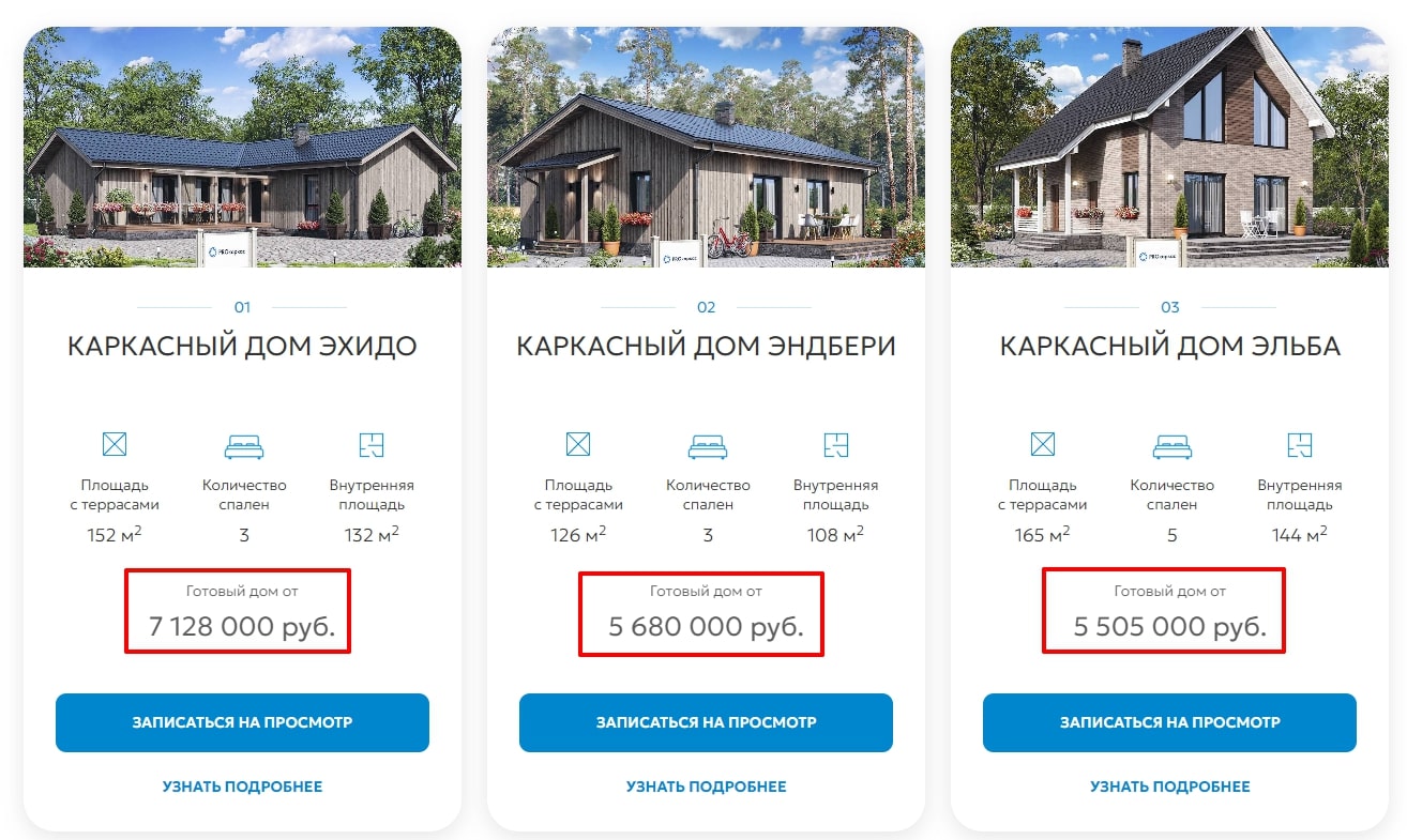 - Добавление цен и информации о проектах: на страницах проектов опубликованы актуальные цены и подробные описания домов.