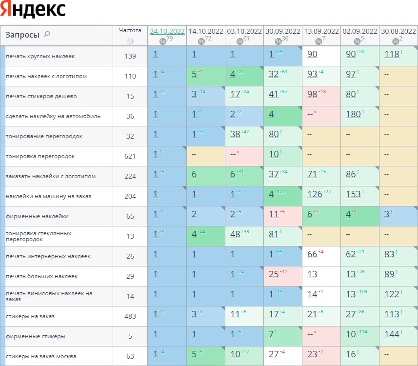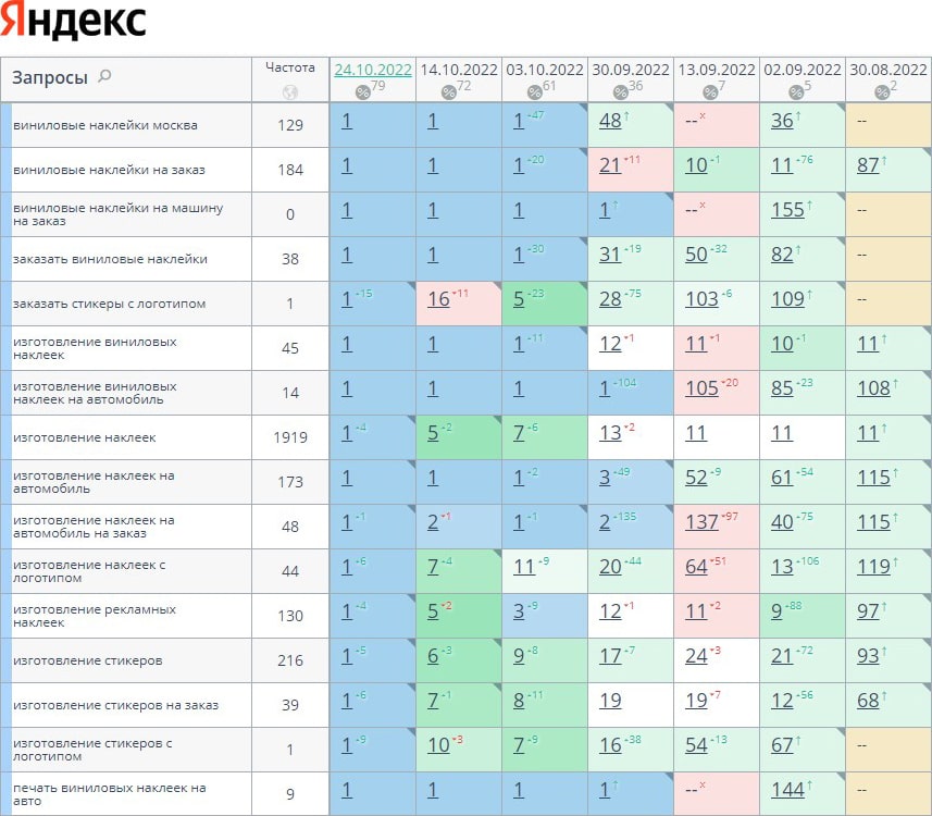За время работы нам удалось поднять позиции с 0% до 79% в ТОП-10, с 0% до 53% в ТОП-3. И так будет с каждым проектом!