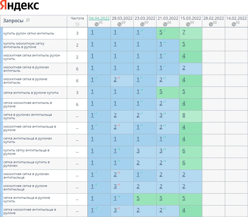 За время работы нам удалось поднять позиции с 4% до 86% в ТОП-10, с 4% до 75% в ТОП-3. И так будет с каждым проектом!
