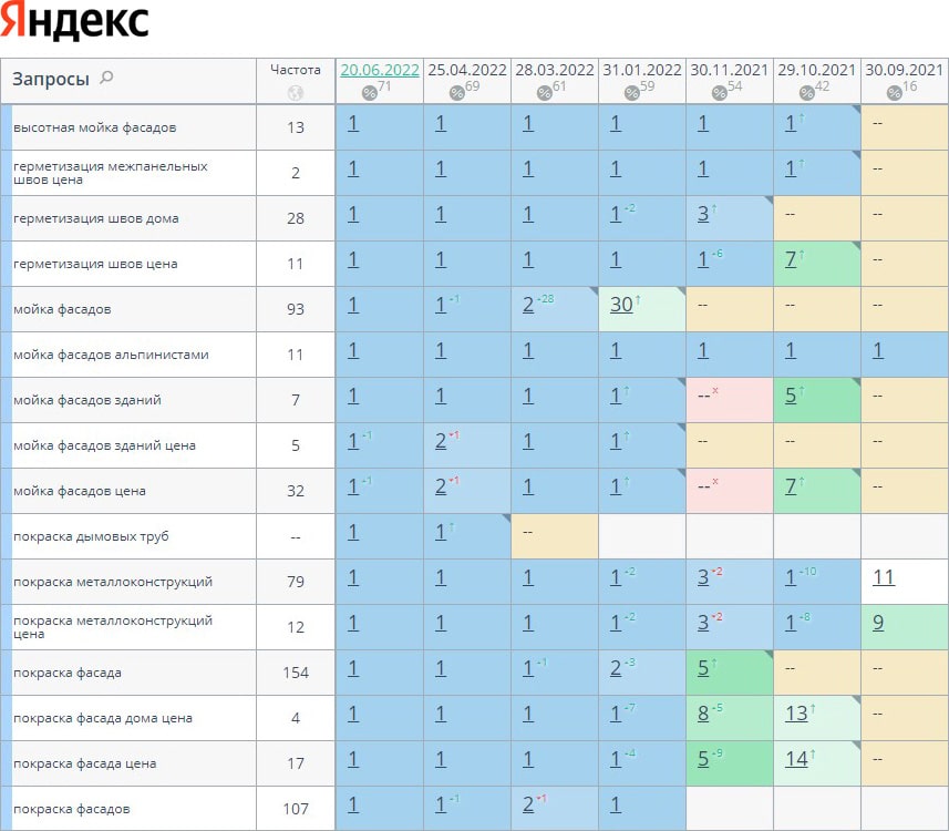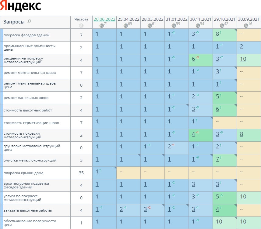 За время работы нам удалось поднять позиции с 15% до 71% в ТОП-10 с 5% до 61% в ТОП-3. Трафик увеличился на 72%, а количество заявок в 2 раза. И так будет с каждым проектом!